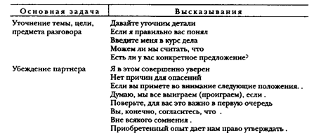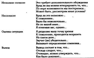 В деловом русском языке можно выделить ряд устойчивых речевых оборотов, которые позволяют собеседникам управлять ходом беседы на этапе обсуждения проблемы и принятия решения. Приведем примеры: