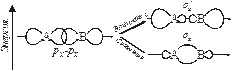 Образование МО из АО представляют также энергетической диаграммой (рис. 4.5). Горизонтальные линии по краям диаграммы соответствуют энергиям исходных АО, а в средней части – энергиям связывающих и разрыхляющих МО.