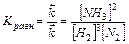 Обратимые реакции могут протекать как в прямом, так и в обратном направлении, в связи с этим ни одно из реагирующих веществ не расходуется полностью. Так, например, следуя рис. 9.1, в состоянии равновесия имеет место определенное количество как реагента, так и продукта. Например, реакция синтеза аммиака является обратимой: