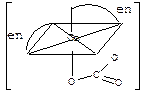 | Бидентатные лиганды функционируют, например, в комплексах [Соеn2СО3] октаэдрического строения (en – сокращенное обозначение молекулы этилендиамина NH2-CH2-CH2-NH2): Здесь каждая из двух молекул этилендиамина реализует бидентатную координацию в металлоцикле: К тридентатным лигандам относится, например, триаминопропан NH2CH2-CHNH2-CH2NH2 в комплексе (к.ч. 6): |