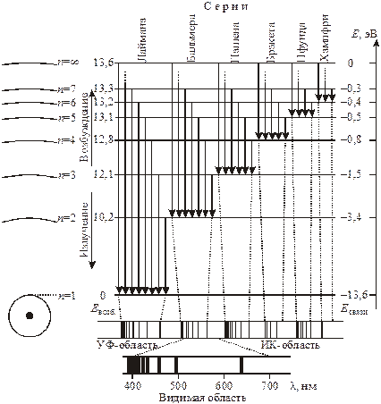 Виды электронных облаков атома водорода в различных квантовых состояниях