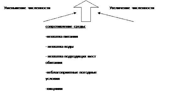Следовательно: рост, снижение и постоянство популяции зависит от соотношения между биотическим потенциалом и сопротивлением среды.
