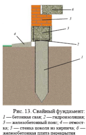 Свайные фундаменты устраивают на деревянных, бетонных и (редко) стальных сваях.