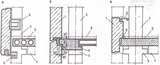 Рис. 60. Варианты опирания наружных панелей на каркас: