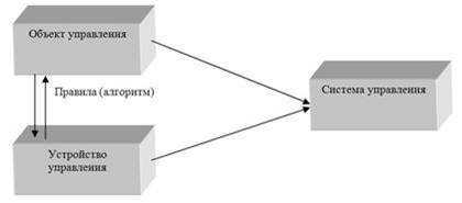 Совокупность объекта управления и устройства управления, взаимодействие которых приводит к поставленной цели управления, называется системой управления.