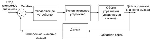 В замкнутой системе производится измерение выходной переменной и его результат в виде сигнала обратной связи сравнивается с эталонным входным сигналом, несущим информацию о заданном значении выходной переменной.