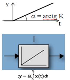 Выходная величина идеального интегрирующего звена пропорциональна интегралу входной величины: