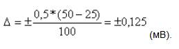 Пример. Определить пределы допускаемой основной абсолютной погрешности измерительного прибора класса точности 0.5 с диапазоном измерений от 25 мВ до 50 мВ.