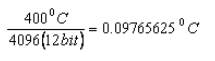 Пример. Нужно установить температуру + или – 1 градус , тогда мы типично стремимся по меньшей мере к 1/10 градуса). Если аналоговый вход 12-бит, и температурный диапазон для датчика от 0 до 4000 С, то наша «теоретическая» точность д. б. рассчитана