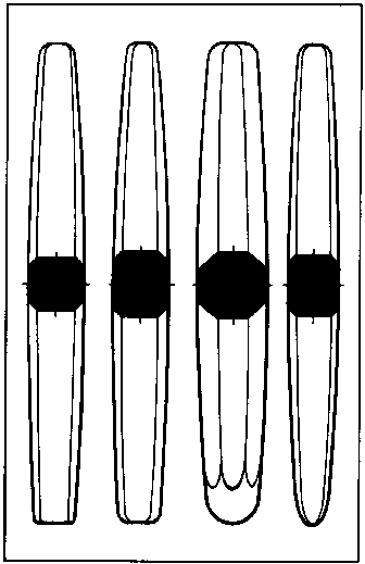 Деревянные чеканы обычно заготавливают в большем количестве, чем это нужно для данной операции, так как они быстро разрушаются. На рис. 36 показаны различные варианты деревянных чеканов.