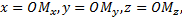 Декартова система координат в пространстве определяется заданием линейной единицы для измерения длин и трех пересекающихся в одной точке взаимно перпендикулярных осей. Точка пересечения осей называется началом координат, а сами оси – координатными осями. Первая координатная ось называется осью абсцисс, вторая – осью ординат, а третья – осью аппликат. Начало координат обозначается буквой