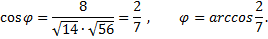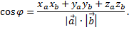 Используя полученное равенство, можно записать формулу для вычисления угла между векторами