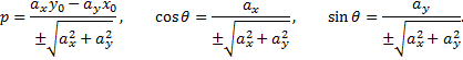 являются направляющими косинусами положительной нормали прямой — перпендикуляра, опущенного из начала координат на прямую. Если