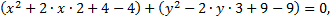 Выражения в каждой из скобок разложим до полного квадрата