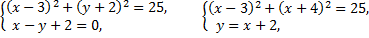 Найдем точки пересечения окружности и прямой, для чего решим систему уравнений