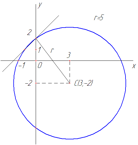Таким образом, определяем координаты центра окружности и ее радиус