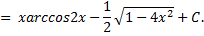 Интегралы от обратных тригонометрических функций находят с помощью метода интегрирования по частям, так как среди табличных интегралов нет интегралов от обратных тригонометрических функций.