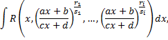 рациональные числа, можно привести к интегралу от рациональной функции с помощью подстановок Чебышева в трех случаях: