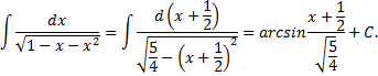 рациональная функция относительно своих аргументов, всегда выражается через элементарные функции. При вычислении такого интеграла часто применяются тригонометрические подстановки. Для этого следует произвести дополнение до полного квадрата, в результате чего получится