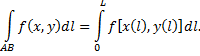 Криволинейный интеграл первого рода сводится к определенному интегралу. Приняв на кривой