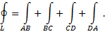 обозначено стрелками. Разбивая весь контур интегрирования на части, получим