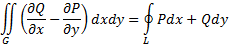 Связь между криволинейными и двойными интегралами устанавливает формула Грина.