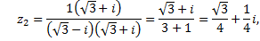 Рассмотрим пример. Представить комплексные числа в алгебраической форме и выполнить операции сложения, вычитания, умножения и деления