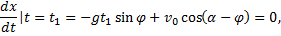 Это значение можно найти, приняв во внимание, что тело падает на наклонную плоскость под прямым углом, т.е. в момент времени