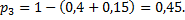 Данные события образуют полную группу, следовательно, сумма вероятностей этих событий равна единице