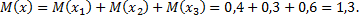 Общее число попаданий есть также случайная величина, состоящая из суммы попаданий в каждом из трех выстрелов. Искомое математическое ожидание находят по теореме о математическом ожидании суммы: