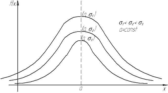максимальная ордината нормальной кривой убывает, а сама кривая становится более пологой, т.е. сжимается к оси