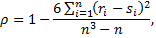 Коэффициент ранговой корреляции Спирмена находится по формуле