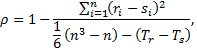 При наличии связанных рангов ранговый коэффициент корреляции Спирмена вычисляется по формуле