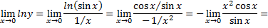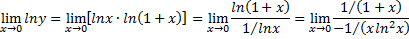 Вычислим предел логарифма данной функции, применяя правило Лопиталя