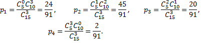 №2. Фермер содержит 15 коров, 5 из которых дают удои более чем по 4 500 литров молока в год. Случайным образом отобраны 3 принадлежащих фермеру коровы. Найти закон распределения случайной величины