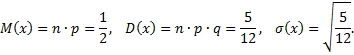 числа выпадений шестерки при 3-х бросаниях игральной кости. Вычислить