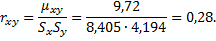 Найдем корреляционный момент, для чего составим вспомогательную таблицу
