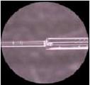 | Контроль качества удаления первичного покрытия волокна и чистоты обработки поверхности оболочки из кварцевого стекла может быть осуществлен визуально с помощью микроскопа. На рис. П.6 – П.9 представлен внешний вид боковой поверхности оболочки для ряда типичных случаев обработки волокна стриппером. В случае, если на поверхности оболочки имеют место |