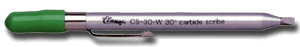 Самый простой вид скалывателей: ручка-скалыватель (рис. П.13). Данные скалыватели выпускаются с 600 конусовидным алмазным наконечником (рис. П.13. (а)) и 900 клиновидным карбидовым наконечником (рис. П.13. (б)). Это наиболее простой и недорогой тип скалывателей. Качество скола, получаемого таким скалывателем, практически полностью определяется навыками и опытом монтажника. Поэтому он применяется в тех случаях, когда не требуется высокое качество скола или предусмотрена последующая обработка торца (например, путем шлифования)