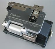 Более эффективно применение скалывателей с продольно-скользящим резаком. К этому типу относятся скалыватели Siemens, Fujikura CT – 07, Fujikura CT – 20. Внешний вид этих инструментов представлен на рис. П.17-П.19. При работе с подобными скалывателями волокно сначала укладывают в V-образную канавку с двумя концевыми опорами и фиксируют его на этих опорах. Затем опускают вспомогательную и основную крышки, надсекая волокно в V-образной канавке дисковидным резаком. После этого опускают верхний подвижный зажим и обламывают ОВ. Работа с данным типом скалывателя не требует высокого уровня подготовки оператора.