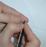 1.Возьмите волокно, зажав его между большим и указательным пальцем, не допуская его изгиба.