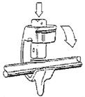 | Рис. П.3. Круговой поперечный надрез ОК: (а) круговым кабельным ножом; (б) круговым кабельным ножом типа «струбцина»; (в) кабельным ножом плужкового типа |