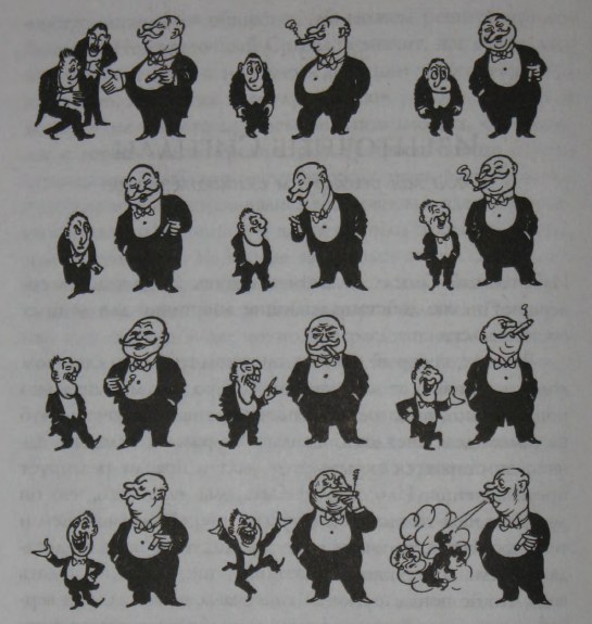В непривычной среде общения человеку может быть трудно соблюсти «золотую середину», которую от него ожидают. Его поведение может быть либо «недостаточным», либо «избыточным», как показано на карикатуре Бейтмена (1920 год).