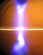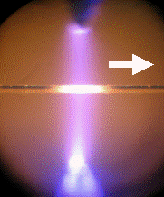 | Рис. П.9. Операция оплавления (обжиг) торцов сращиваемых ОВ: (а) правильно; (б) неправильно – волокна не находятся в плоскости электродов |