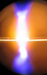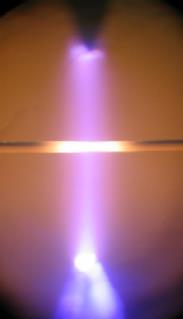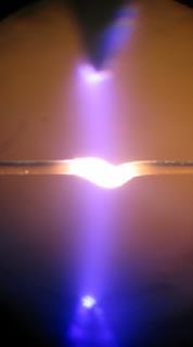 Наконец, установка зазора между торцами сращиваемых ОВ значительного большего, по сравнению с нормируемой, согласно инструкции, величиной, является основной причиной возникновения деформации последних в виде «спичечных головок» (рис. П.15 (а)). При этом попытка сварки волокон с подобными деформированными торцами (рис. П.15 (б)) в большинстве случаев приводит к образованию дефекта, представленного на рис. П.12 (е).