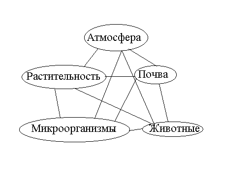 Рис. 6.1. Взаимосвязь в системе биогеоценоза