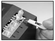 12. После полировки очистите торец наконечника салфеткой смоченной в спирте. Установите хвостовик в разъем и наденьте предохранительный колпачок (рис. П.15.).