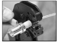 3. Надвиньте хвостовик разъема, адаптер и обжимное кольцо на ОВ (рис. П.6.).