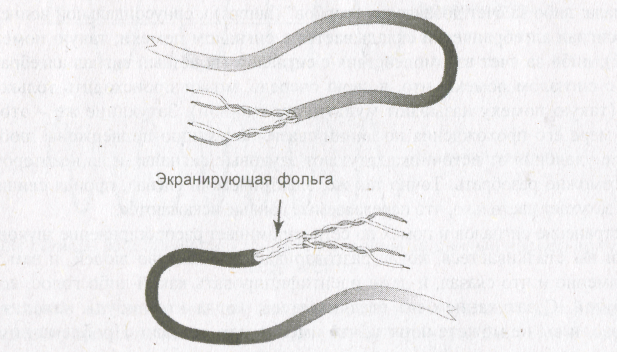 Кабель UTP и STP имеют два отличия. Первое: в UTP используются четыре пары проводников, а в STP - две. Второе, и основное, отличие заложено в самом названии кабелей. В STP предусмотрен дополнительный проводящий слой, окружающий витые провода, который обеспечивает дополнительную защиту от помех. Это отнюдь не означает, что кабель STP всегда лучше защищен от RF-шумов по сравнению с UTP. Просто в кабелях использован разный подход к проблеме защиты. Теоретически, в кабелях UTP, где два провода скручены друг с другом, каждый в отдельности провод является приемником шума, но эти шумы противофазные.