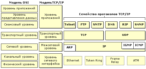 Стек TCP/IP - набор протоколов, разработанных для обеспечения взаимосвязи различных устройств в сети Интернет. Стек включает следующие протоколы